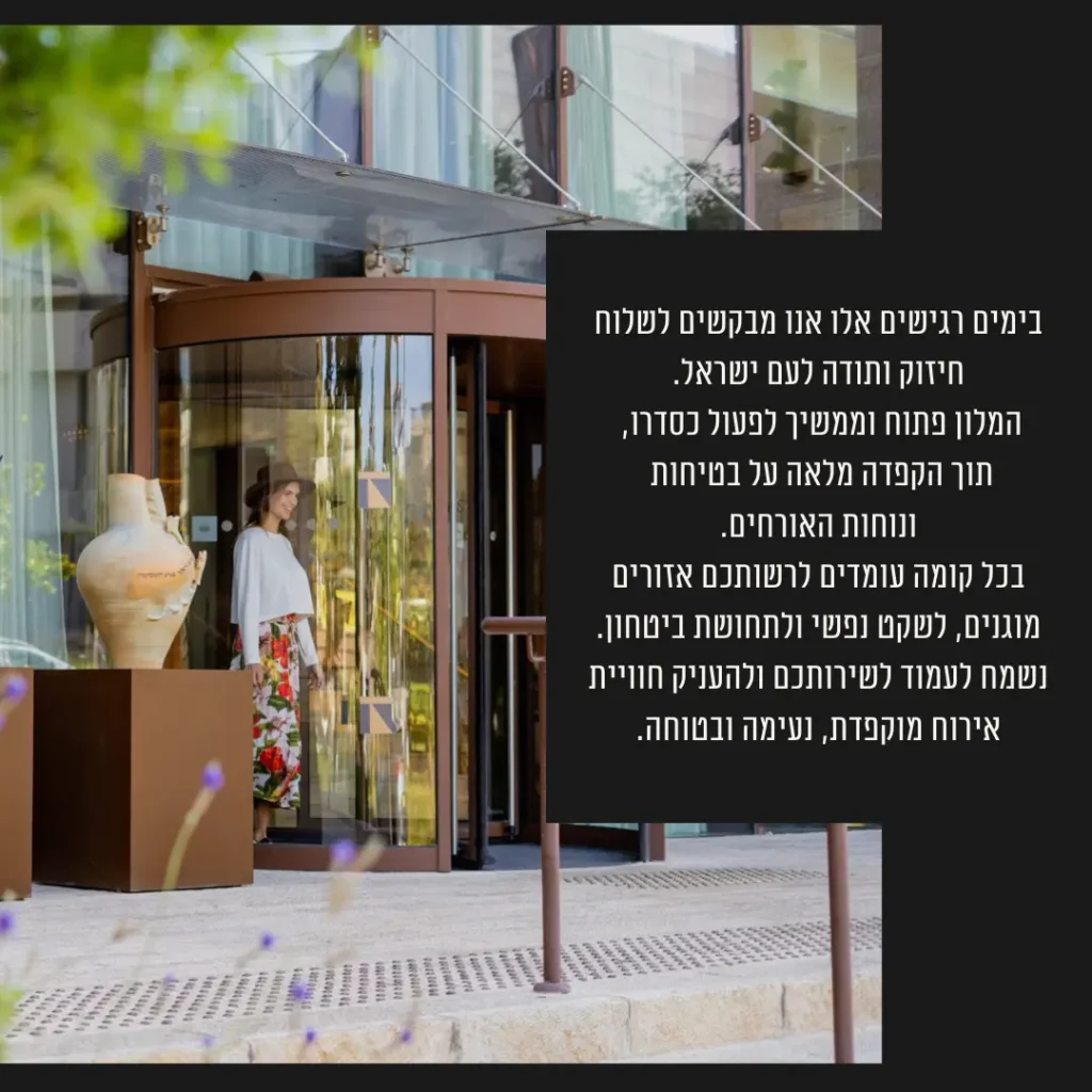 The spa is currently closed in accordance with Home Front Command directives.